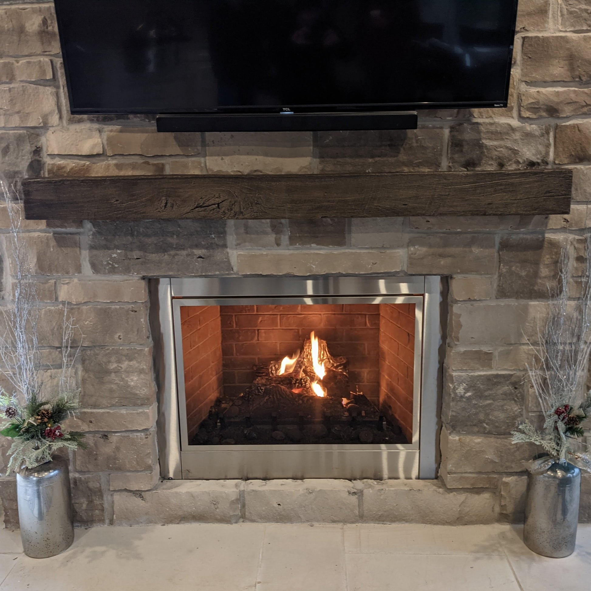 Barn beam mantels create a unique focal point, adding character and warmth to any room, not to mention being the ultimate conversation piece - “yes, that’s concrete!”