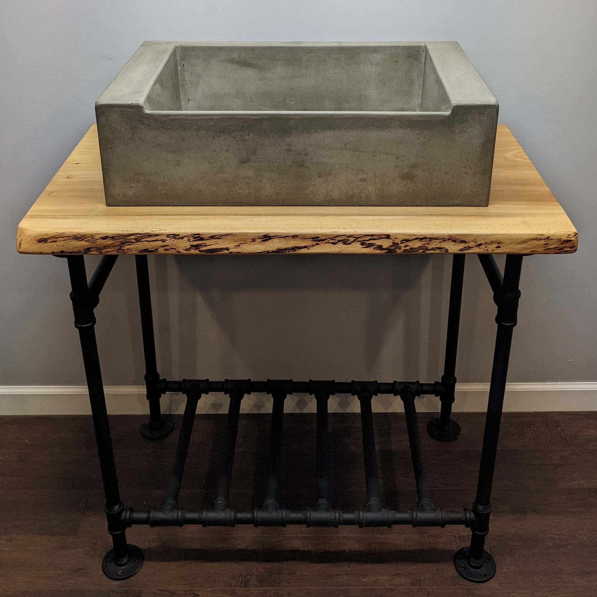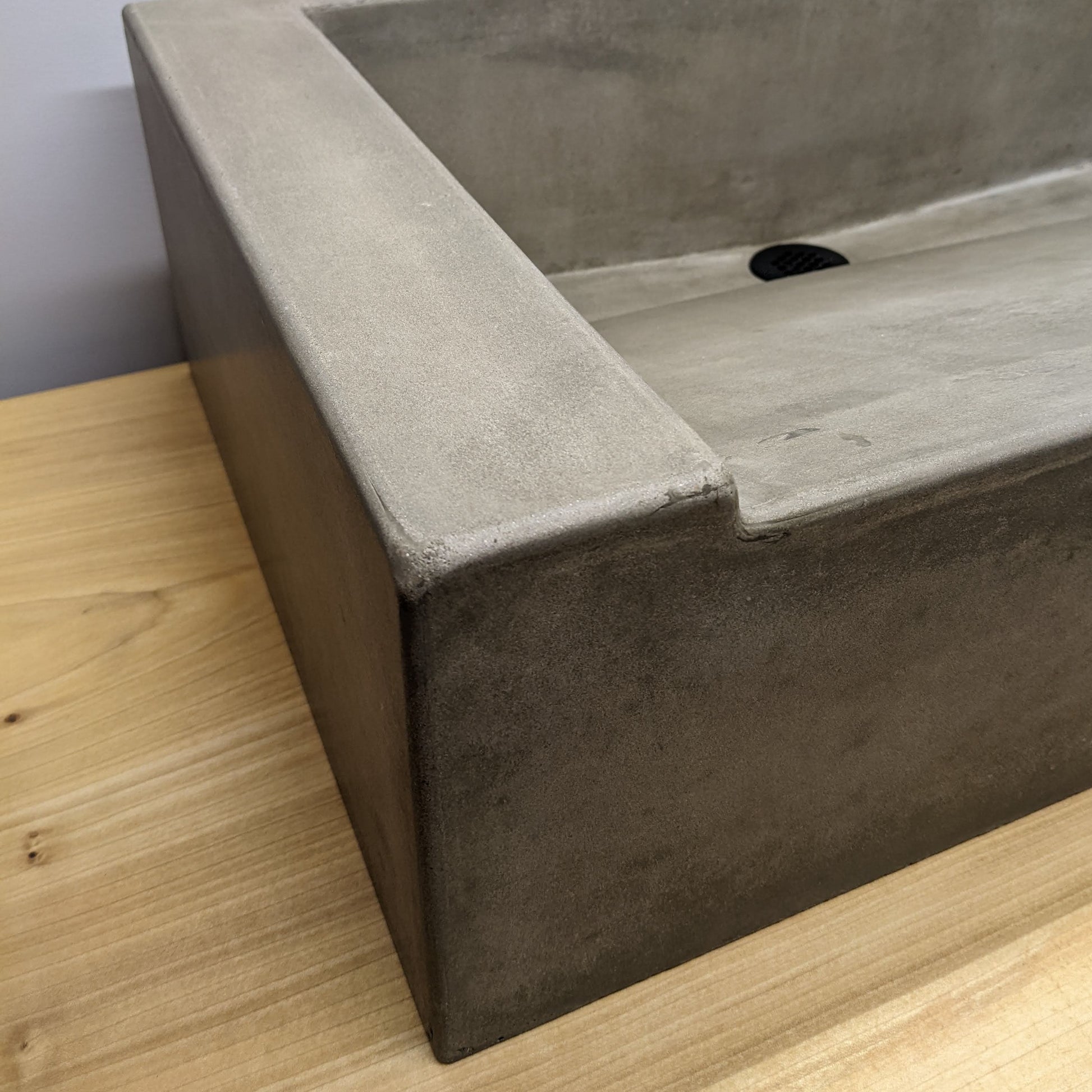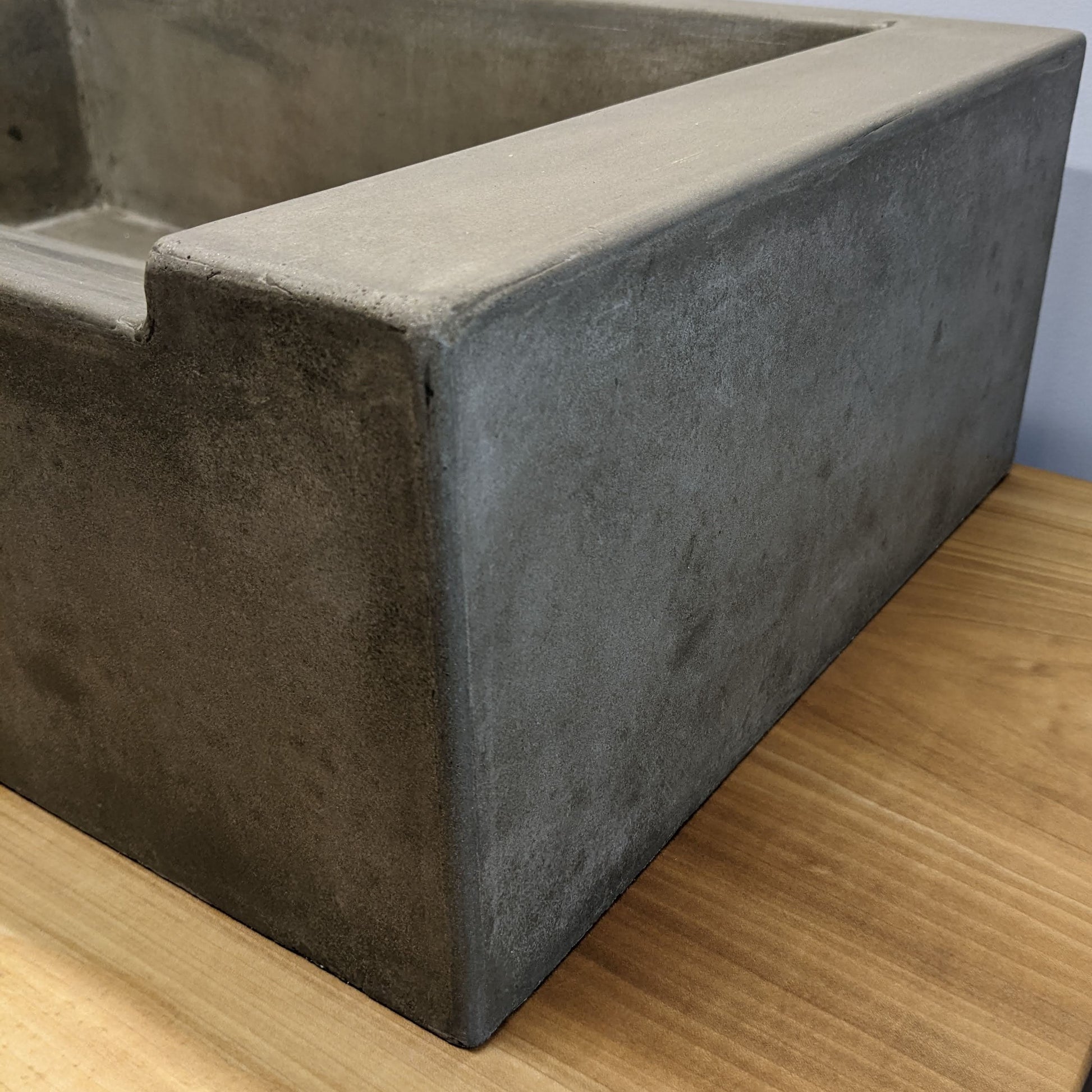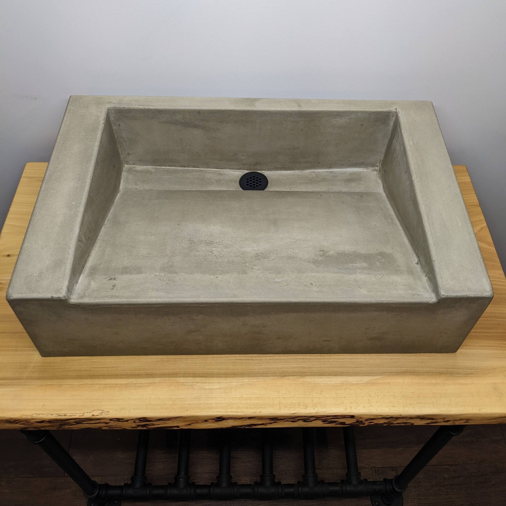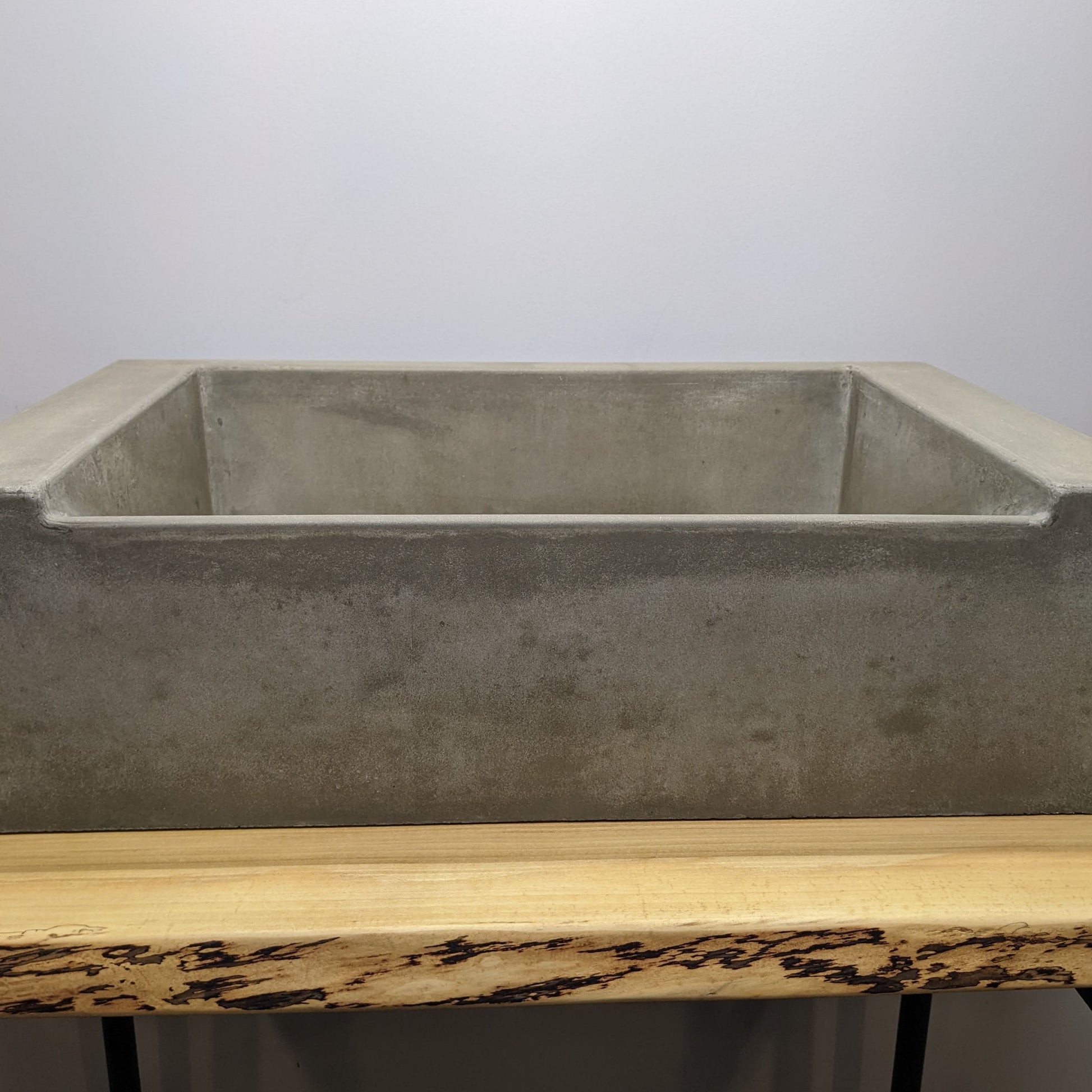 A ramp sink cast as a standalone vessel presents no need for aesthetic tricks, revealing a natural quality, a timeworn finish makes for a well-studied industrial feel.