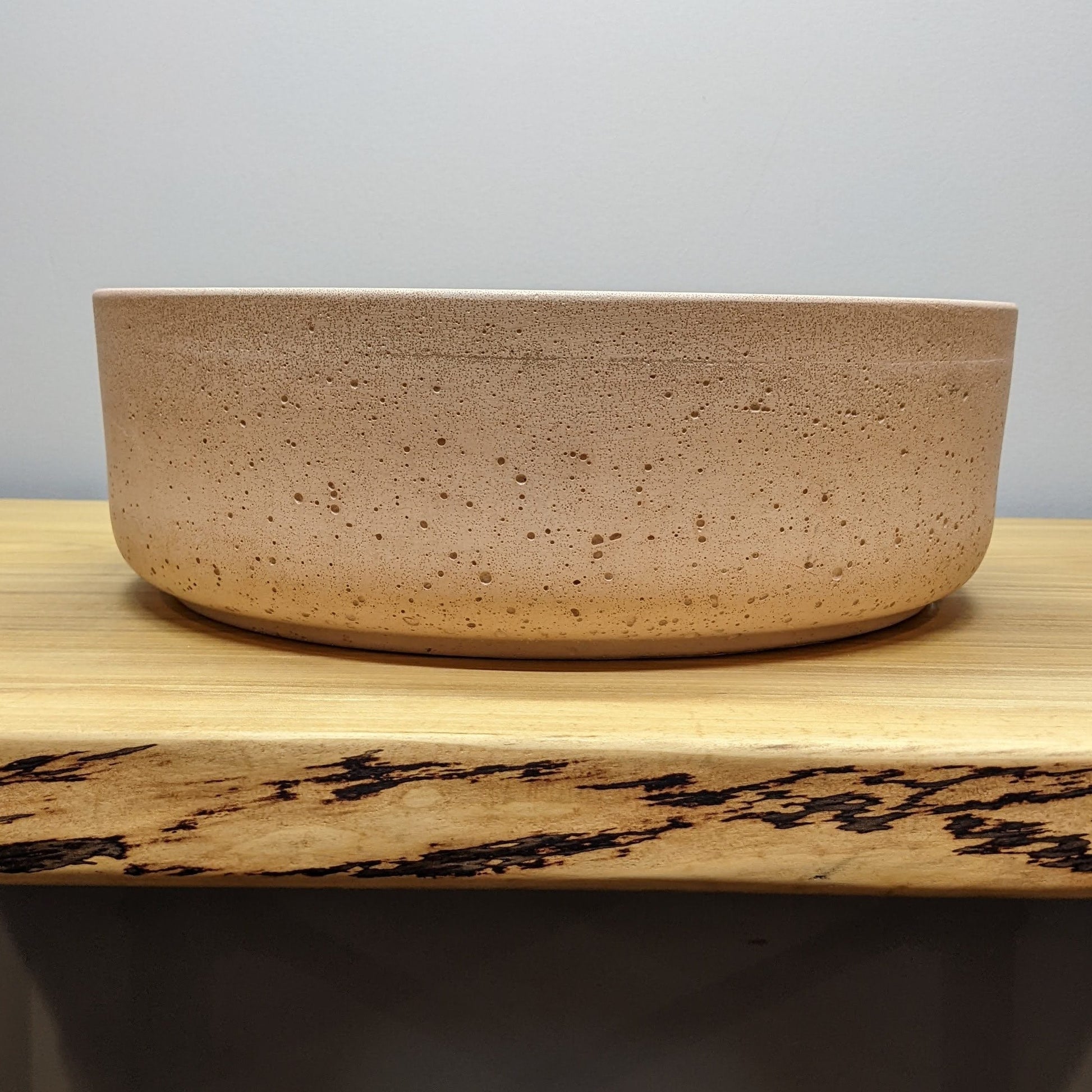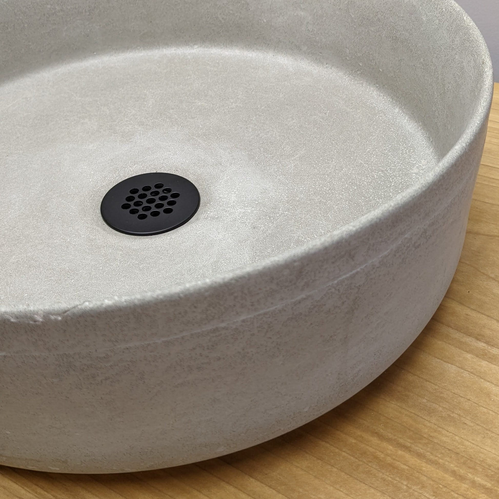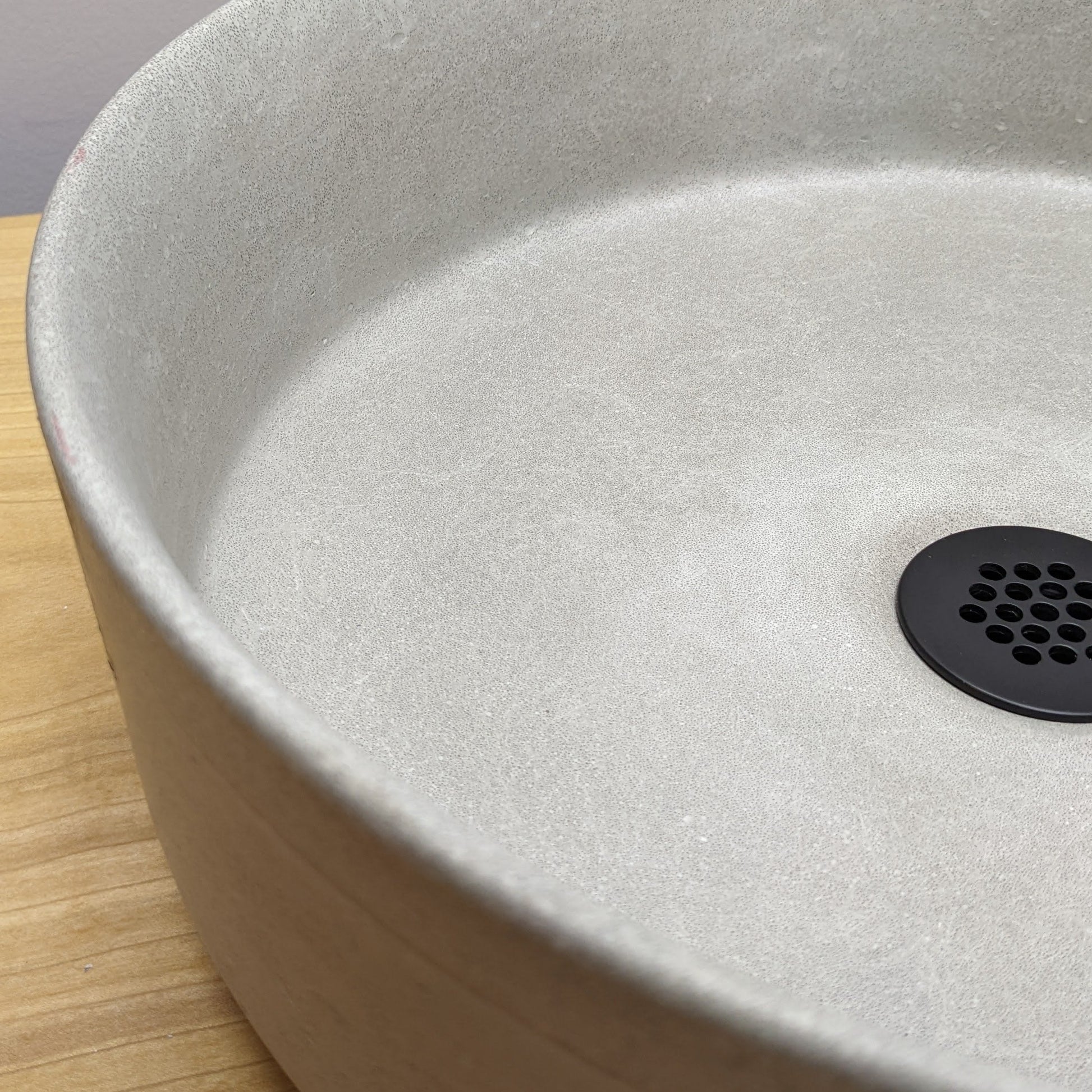 The Ruby is a fashionable concrete vessel, its large diameter will provide function while introducing a debonair aesthetic. Perfect for chic powder rooms!