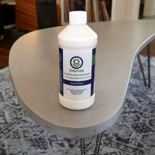 Ovation Concrete Countertop Sealer is a food safe, single component DIY concrete countertop sealer that also offers excellent performance. In the past, single component sealer choices were limited to under-performing acrylics or flammable solvent-based treatments. Ovation is water based, completely safe, and can be used indoors and outdoors. It’s easy enough for all DIY artisan concrete projects, and high performance enough for pro projects.
